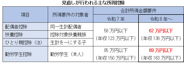 (注)「ひとり親控除」の控除額は、令和9年分以後、38万円(現行:35万円)に引き上げられる見通しです(令和8年度改正案)。