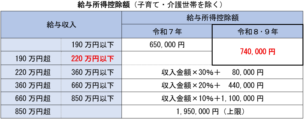 給与所得者の給与所得の金額は、給与収入の金額から給与所得控除額を差し引いて算出します。令和8年度改正が実施されますと、給与所得控除の最低保障額が65万円から(2年限定で)74万円に引き上げられます。